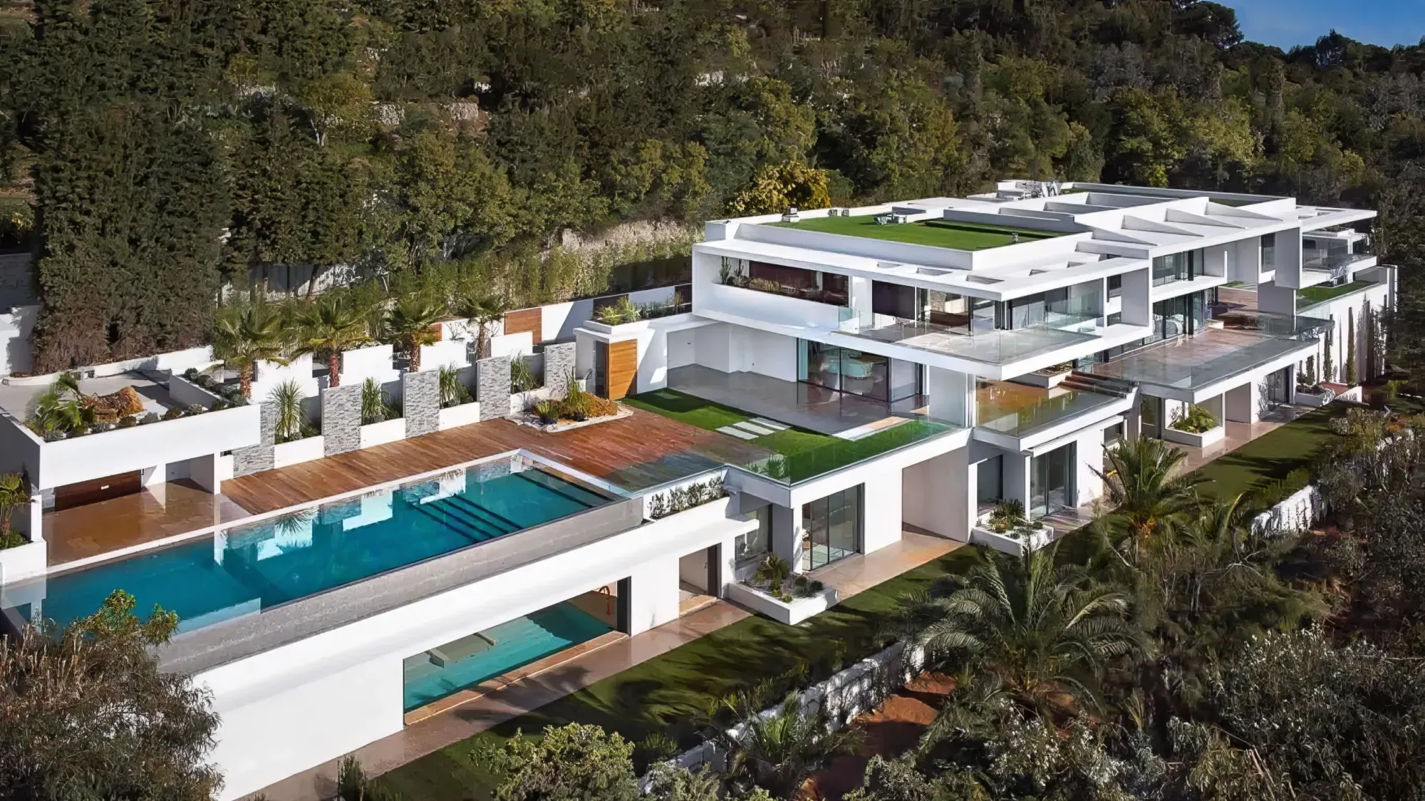 Domaine de Lansa is an astounding contemporary estate perched in the heart of the prestigious hillsides of Super Cannes. Offering the pinnacle of French Riviera glamor and luxury, this revered oceanview 7 bedroom luxury Villa boasts awe-inspiring vistas over the Cap d'Antibes.