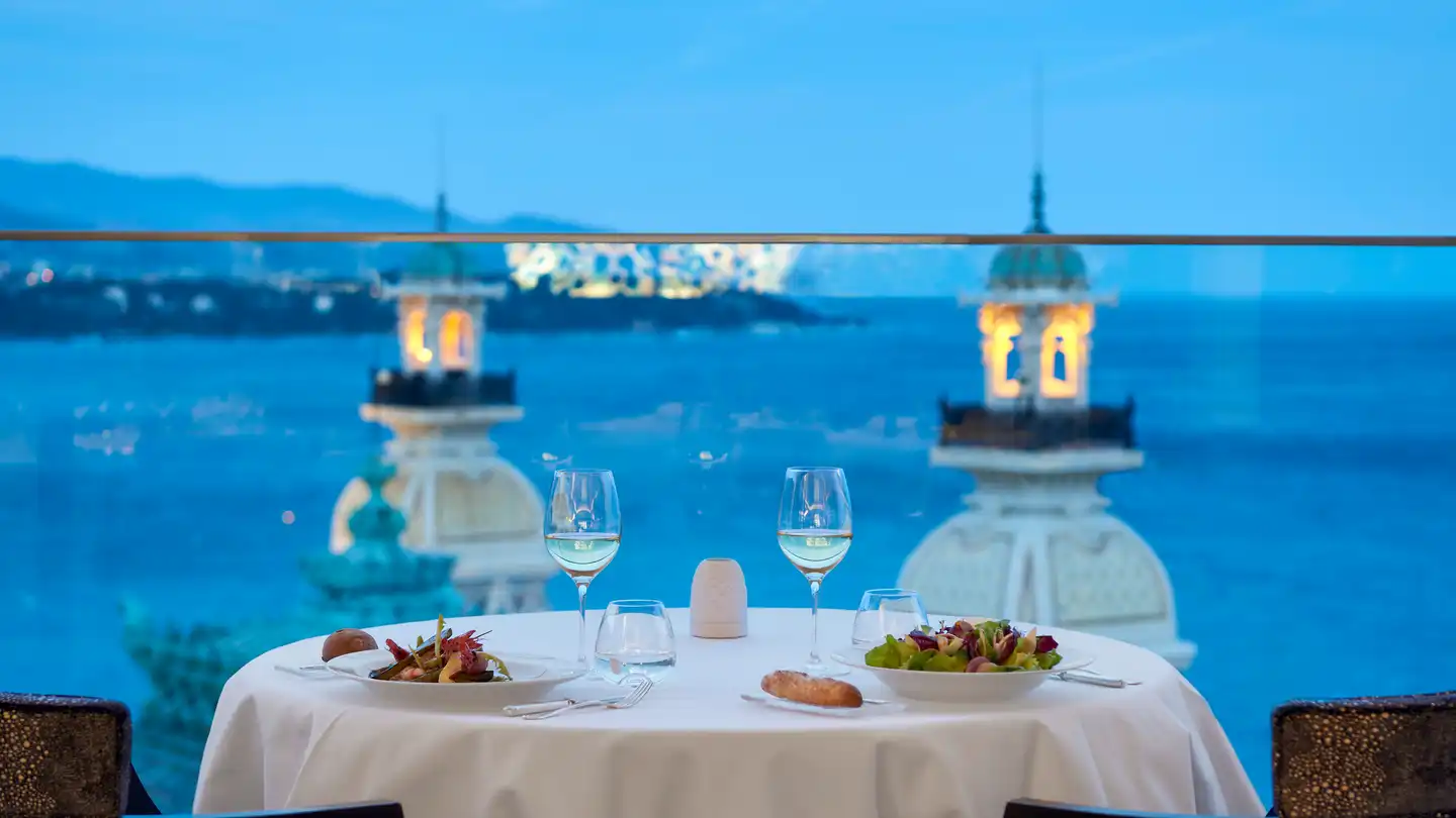 The iconic one-star Michelin restaurant Le Grill is on the eighth floor of the legendary Hotel de Paris, flaunting breathtaking views of the Principality. The menu features dishes from grilled meats to seafood made with seasonal produce and the love of chef Dominique Lory. The magnificent decor is inspired by the Mediterranean, creating a captivating blue color palette highlighted with bold lines. Dining in this restaurant is an experience of elegance and luxury.