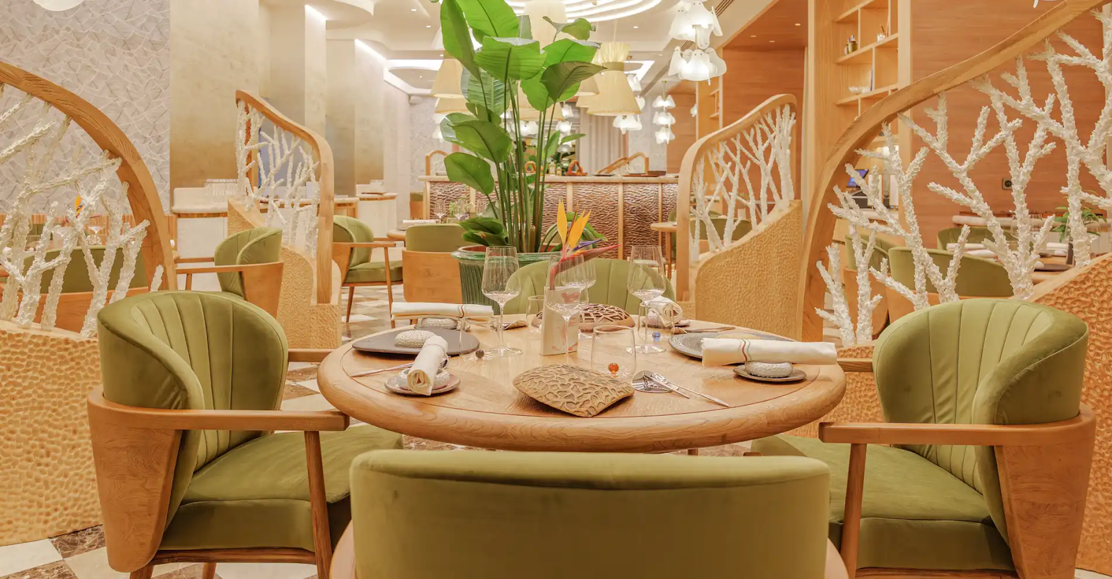 This two-star Michelin restaurant in Monte-Carlo Bay Hotel & Resort features chef Marcel Ravin’s Mediterranean and Caribbean menu. Alexandra Saguet's interior design completes the luxurious atmosphere of this restaurant. The decor's inspiration comes from nature, so pristine wood paneling and intricate plant ornaments perfectly represent the idea while providing intimate dining spaces to enjoy Marcel Ravin’s spectacular dishes fully.