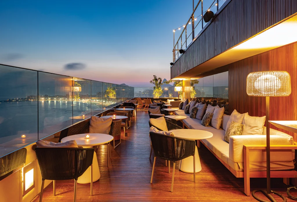 Found on top of the Hilton Copacabana, 39 floors above Avenida Atlântica, the Isabel Lounge and rooftop terrace offer breathtaking views with the Sugarloaf Mountain, Christ the Redeemer, and Copacabana beach all included in the vistas. Decorated with a boho-chic inspiration, the rooftop bar offers a menu filled with authentic and delicious cocktails and tasty Brazilian flavors – all served in a sophisticated yet cosmopolitan and bohemian atmosphere. By night, the rooftop bar offers a drink menu created by Alex Mesquita, with authentic and delicious cocktails prepared with Brazilian herbs and seeds, as well as a food menu by Chef Pablo Ferreyra, also including tasty Brazilian flavors and many dishes perfect for sharing.
