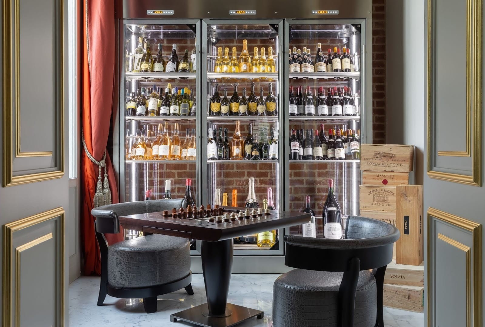Central to this ethos of curated experiences is the villa’s private wine cellar. “Our wine cellar celebrates global provenance while echoing the villa’s social spirit,” Dasha shares. Designed to be indulgent yet unobtrusive, it invites guests to explore a collection that traverses the world’s finest vineyards. Whether enjoying a guided tasting or selecting a bottle for a private dinner, the space harmonizes refinement with intimacy.